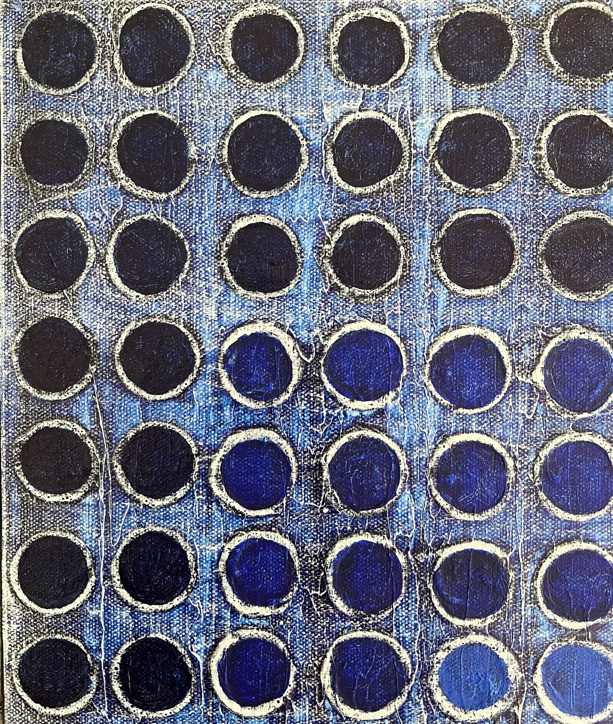 Parte de la serie El Color como Centro, esta obra investiga la relación entre el color, la percepción y la emoción. La retícula de puntos se expande en forma radial, creando una sensación de movimiento interno, casi meditativo, que invita a la contemplación y al equilibrio.