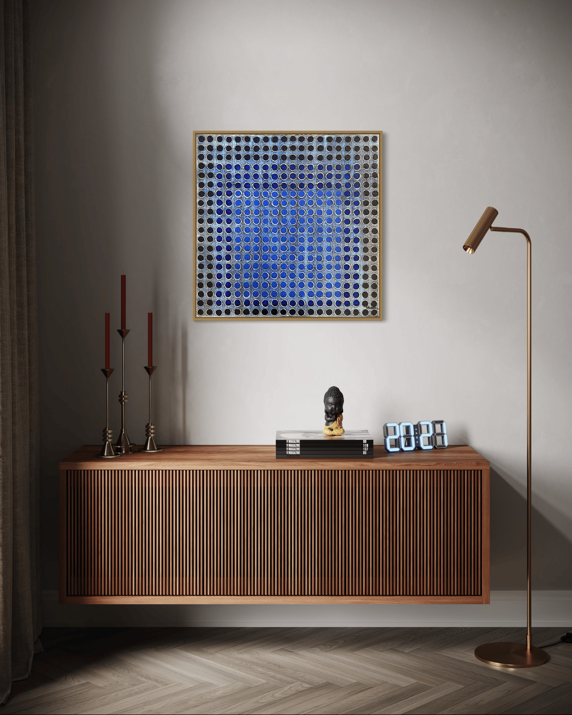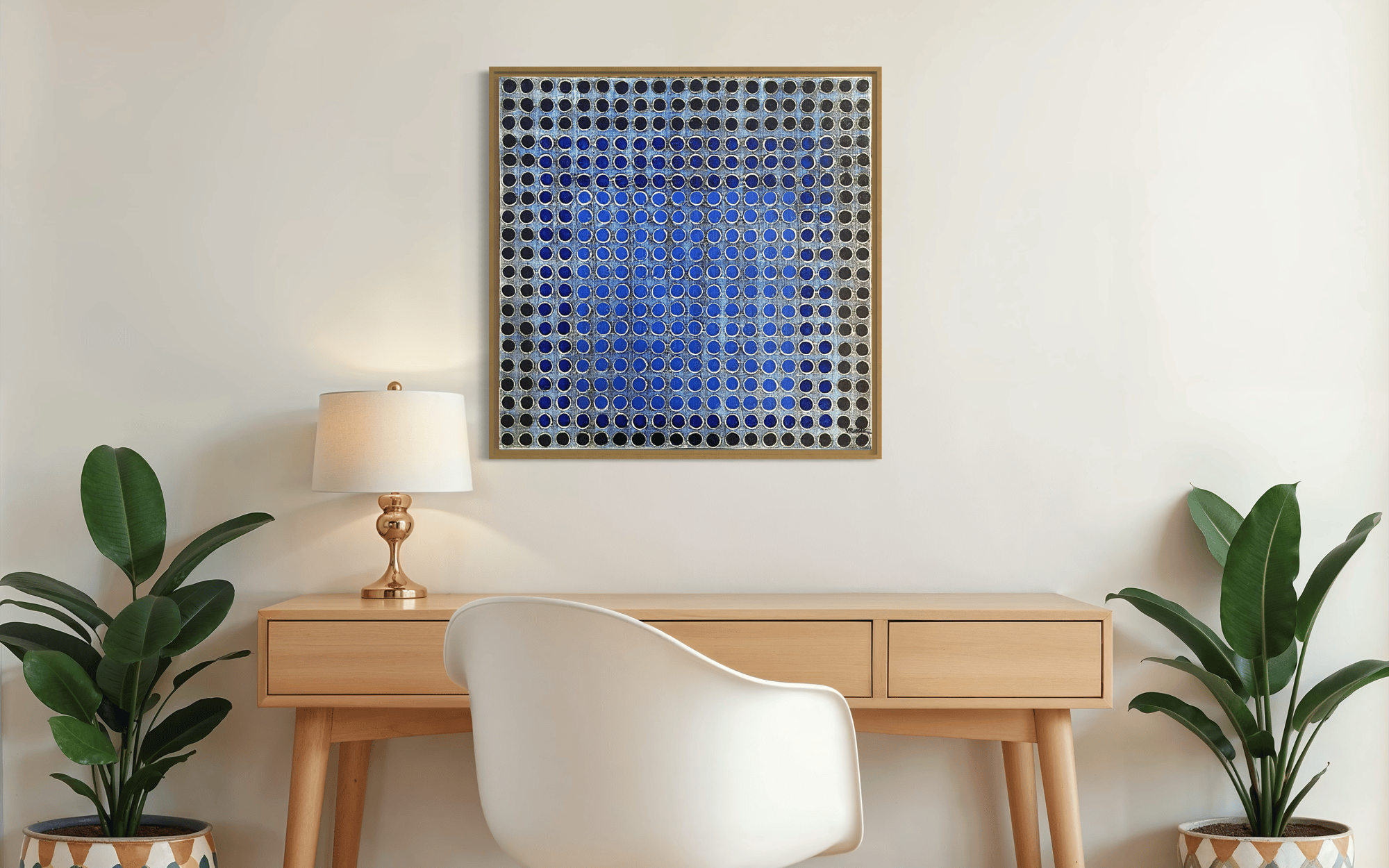 El azul —símbolo de introspección, serenidad y profundidad— se convierte aquí en un centro de energía visual, donde cada tono respira y dialoga con los demás.